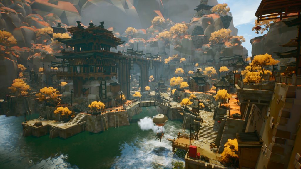 Когда уберётся туман, начинается цикл смены дня и ночи, и локации буквально начинают играть новыми красками. Зажигаются бумажные фонарики, на небе появляются звёзды, отдалённые постройки и горы становятся лишь едва уловимыми силуэтами, над водой виднеется туман. Неплохо для малютки-игры на ~11 часов геймплея.