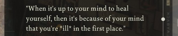 Для того чтобы закончить квест, пришлось прилично посейвскамить возле зеркала (чёртов пирог), зато я получила новую аватарку 😎 Оставалась последняя ачивка — закончить расследование не осматривая труп. Но прежде чем продолжить, мне очень хотелось пройти проверки на болевой порог и риторику у Руби и посмотреть, что она скажет, вместо того, чтобы выпилиться, плюс — смогут ли мне как-то помочь все собранные сведения о Pale (квест нацистов тоже даёт кое-что в этом плане). Это означало, что мне нужно было вкачаться в эти статы, прежде чем идти к ней. Поэтому, хоть я и не собиралась изначально, но пошла делать квест в церкви.
